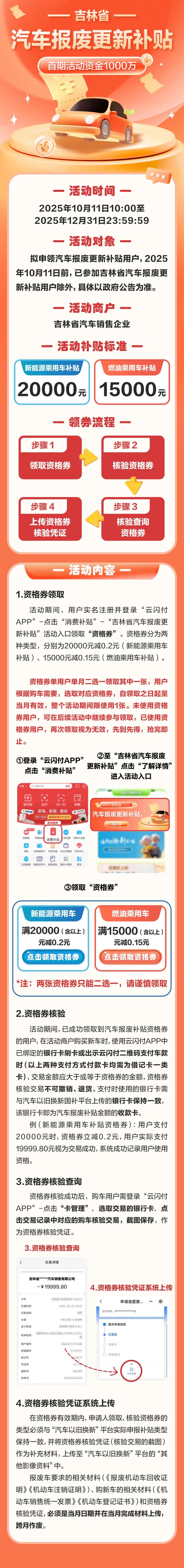 2.资格券数量有限,建议提前了解活动规则。请消费者根据自身需要合理安排参与吉林省汽车报废更新活动,本次活动不涉及任何中介代办服务,请勿相信“代抢资格”等虚假承诺。