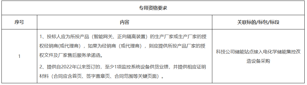 招标人为南方电网储能股份有限公司。项目资金来自自筹资金,资金已落实。项目位于广州番禺电力科技园、深圳潭头储能站、海南药谷储能站。项目概述为标包1:对新接入的深圳潭头、海南药谷储能电站,完成站内视频安防子系统改造、站内辅控子系统(门禁系统,报警主机等等)改造,实现广州集控中心对各站点的控制监测、数据统计分析及各站点无人值班功能。招标范围为深圳潭头、海南药谷储能电站集控接入改造所需设备及相应的安装调试等。
