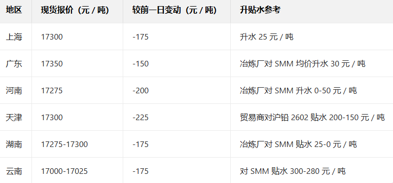 1月9日国内主流铅现货报价