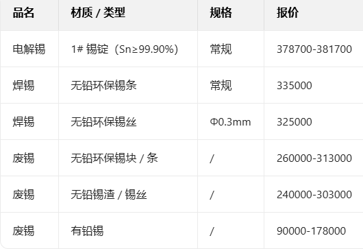 1月13日锡现货主流报价