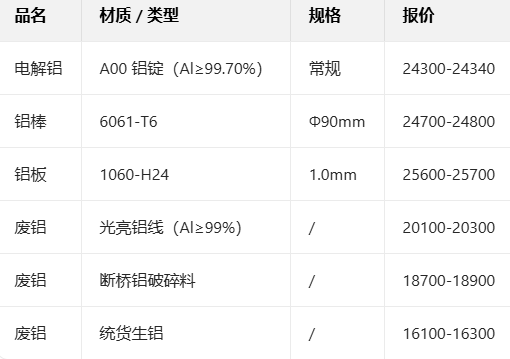 1月13日铝现货主流报价