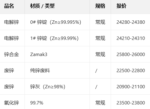 1月13日锌现货主流报价