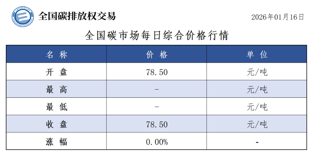 1月16日全国碳市场价与前一日持平 碳排放配额总成交700000吨【交易日报】