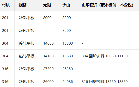 1月20日不锈钢现货报价