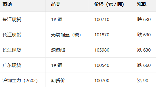 1月20日铜现货报价
