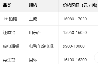1月20日铅现货报价