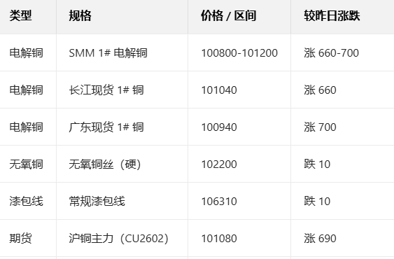 1月23日国内主流铜现货报价
