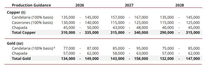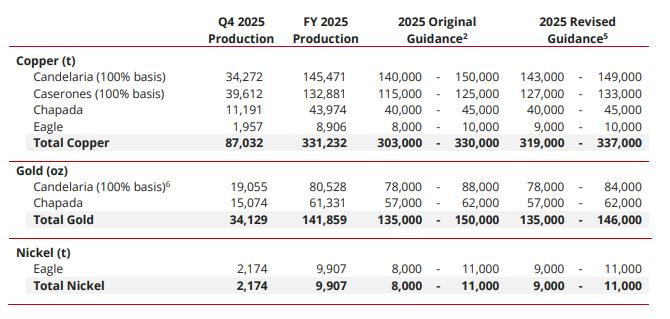 同样位于智利的Candelaria铜矿在2025年生产了145,471吨铜。