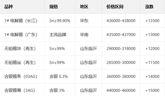 1月26日国内主要市场锡现货报价