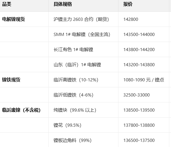 1月30日镍现货价格参考