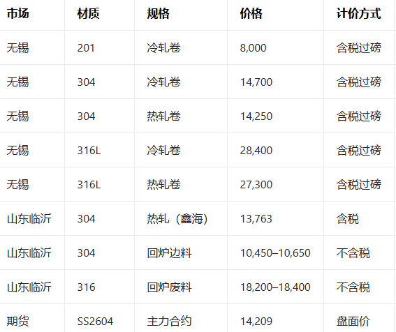 3 月2日不锈钢现货行情汇总