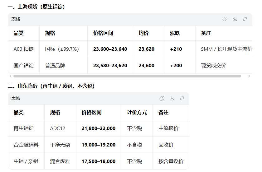 3 月2日铝现货行情汇总