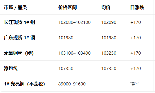 3月4日铜现货价格参考