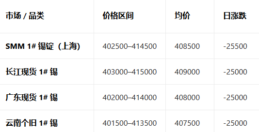 3月4日锡现货价格参考