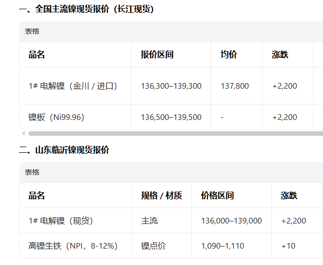 3月23日主流镍现货含税报价参考