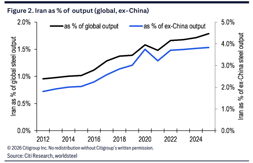 当然,花旗研究也提示了对冲因素:伊朗国内钢铁需求在当前局势下可能短期萎缩,因此未必需要全量替代所有DRI产能。