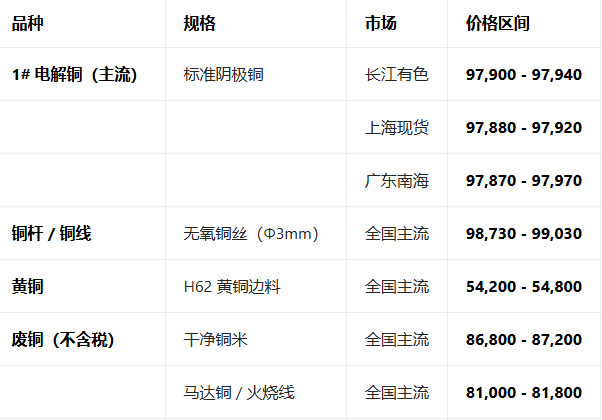 4月9日全国铜现货价格参考表