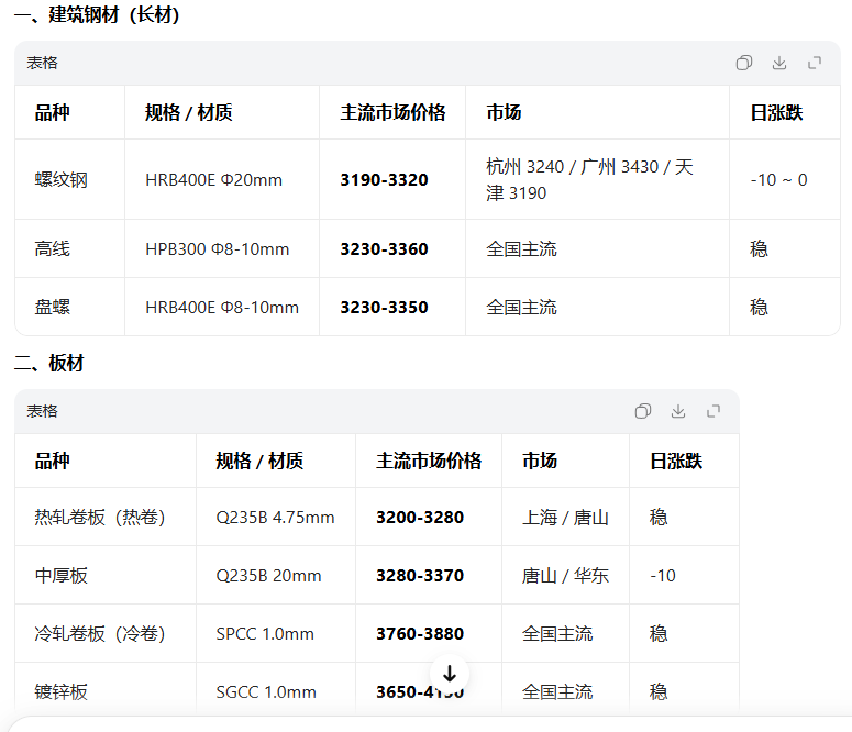 4月9日全国钢材现货价格参考表