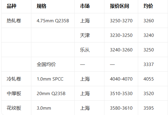 4月10日全国钢材现货报价参考