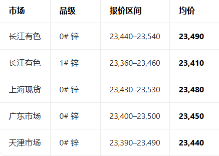 4月13日全国锌现货主流报价参考