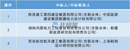 其中,陕西建工第四建设集团有限公司(联合体成员:中国能源建设集团新疆电力设计院有限公司)位列第一中标候选人,详见下表: