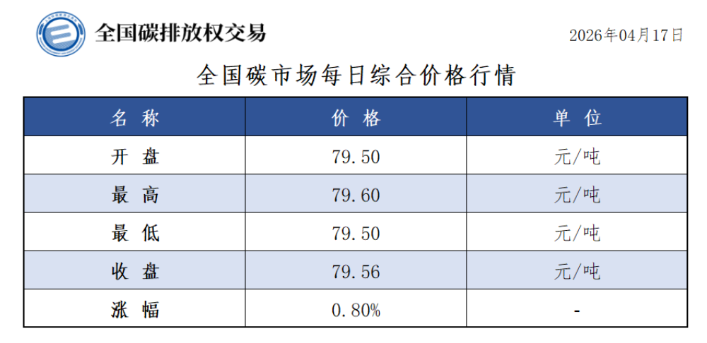 4月17日全国碳市场价涨0.8% 碳排放配额总成交211548吨【交易日报】