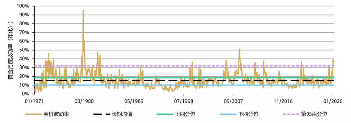 2026年金价波动率有所上升(图1),突破了其常规水平的上限,攀升至自1971年以来历史表现的前20%区间。导致金价如此剧烈波动的驱动因素,在世界黄金协会1月、2月和3月的《黄金》中进行了分析,具体包括: