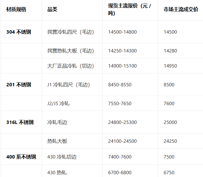 04月21 日不锈钢全国现货现货报价参考