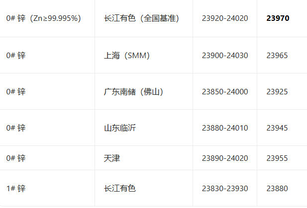 4月22日全国锌现货报价参考
