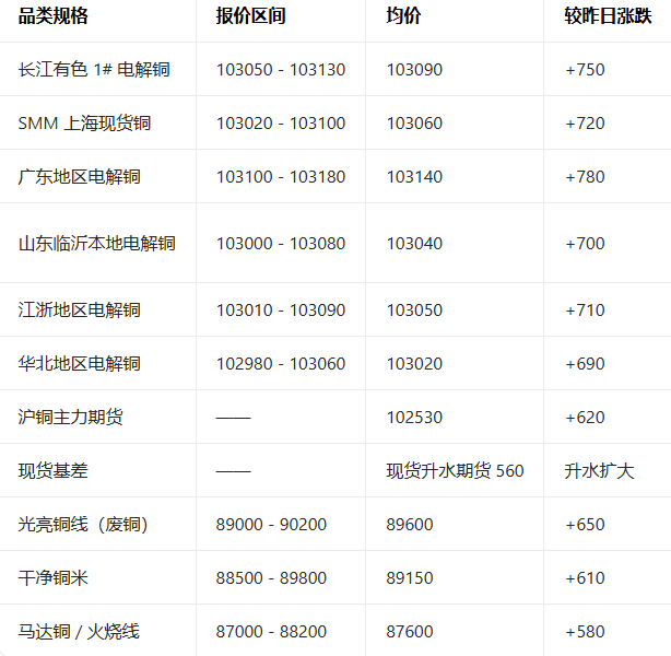 4月23日铜全国报价参考