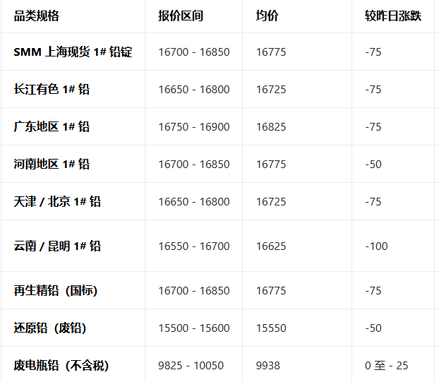 4月23日铅全国报价参考