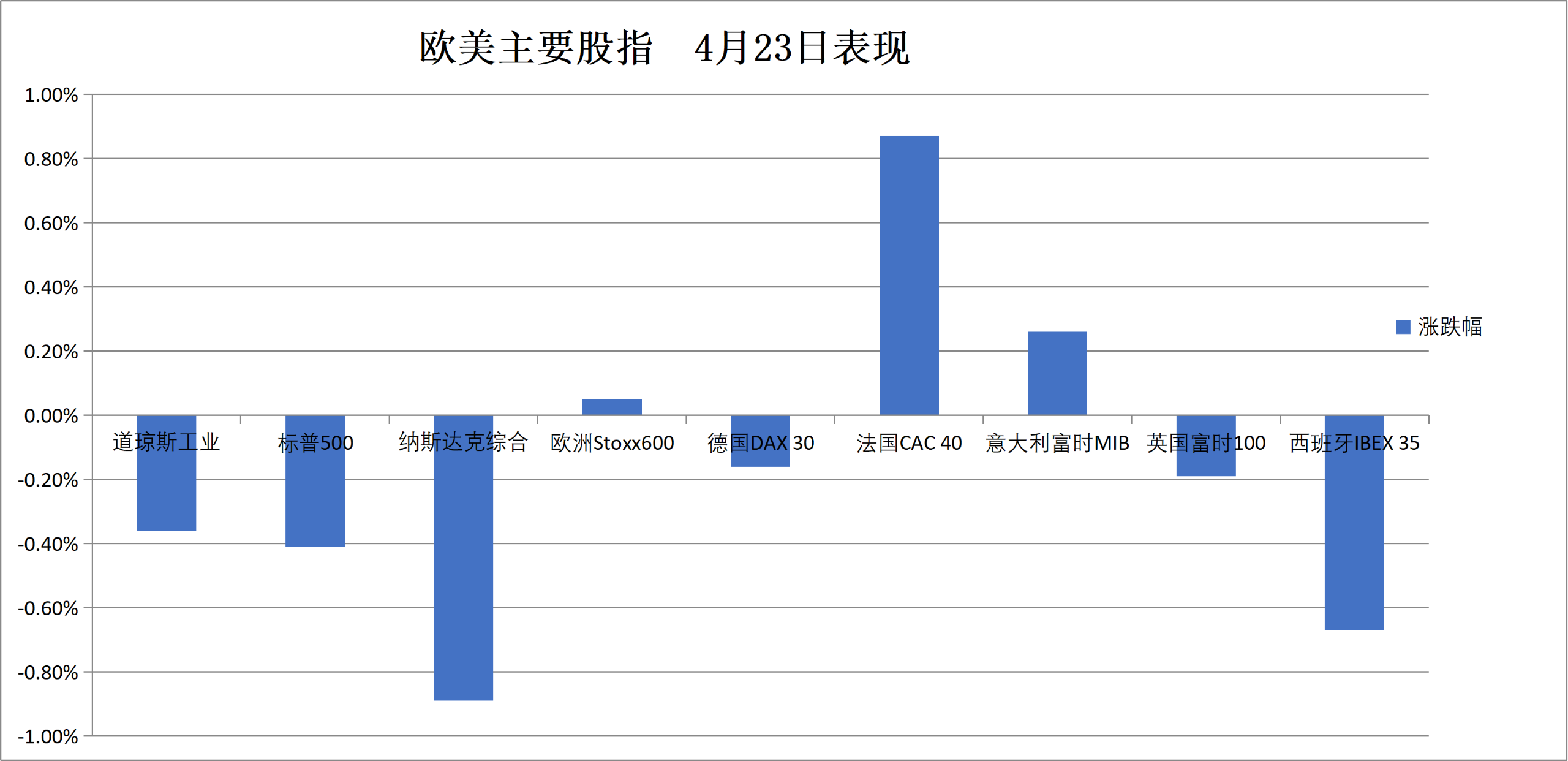 (4月23日 欧美主要股指表现)
