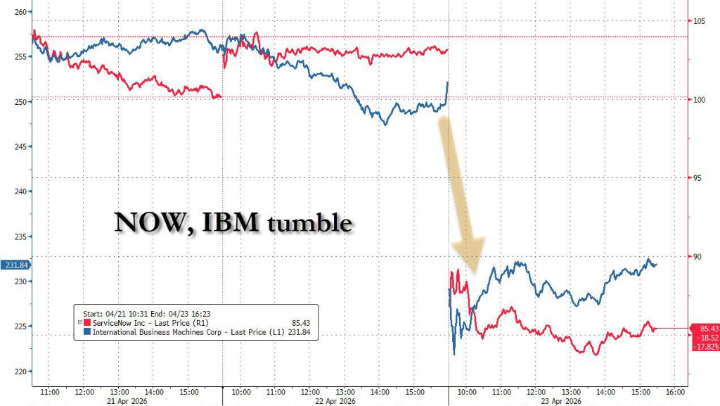 (蓝线IBM和红线ServiceNow日内重挫)