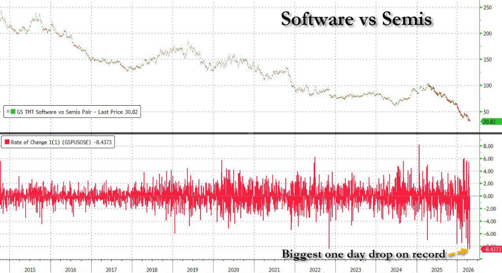 在标普各行业板块中,软件板块表现尤为突出,暴跌6%,结束了此前连续8个季度的上涨势头。