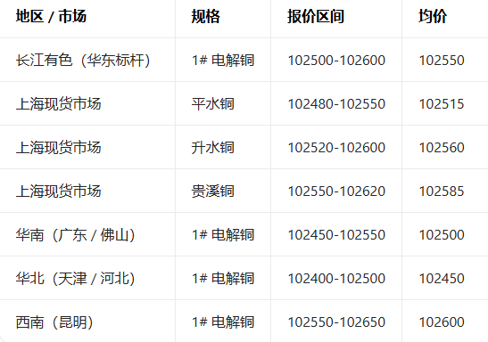 4月27日全国铜现货报价参考