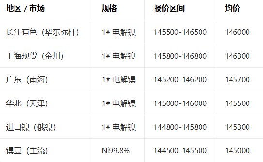 4月27日全国镍现货报价参考