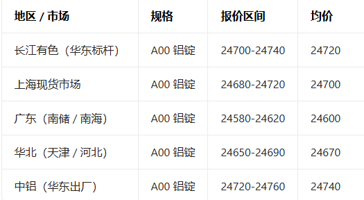 4月27日全国铝现货报价参考