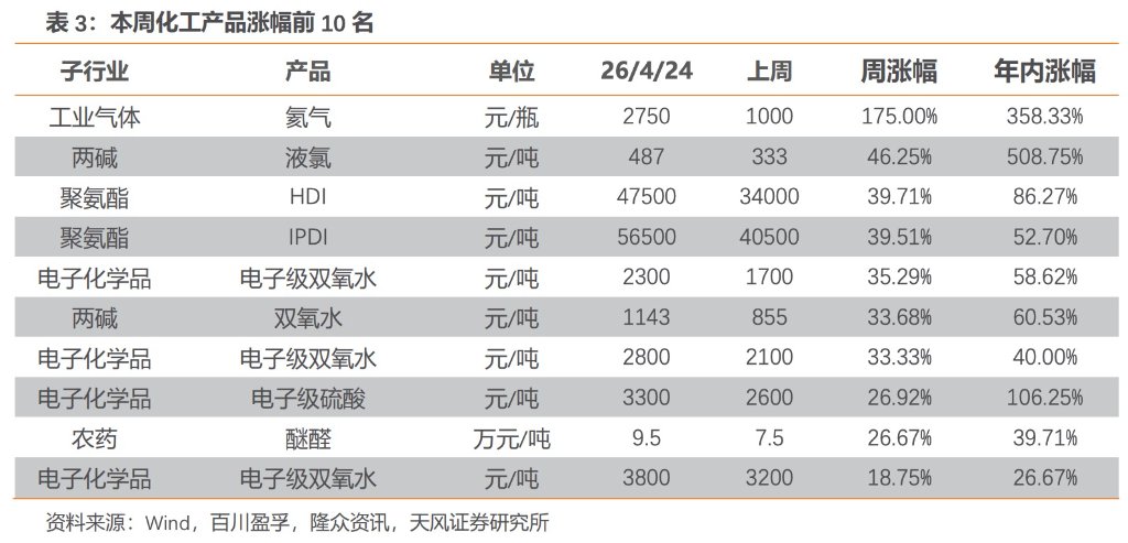 行情背后是氦气价格的持续飙升。过去一周,氦气价格涨幅居化工产品之首,国内现货价格单周暴涨175%,年内累计涨幅已达358.33%。