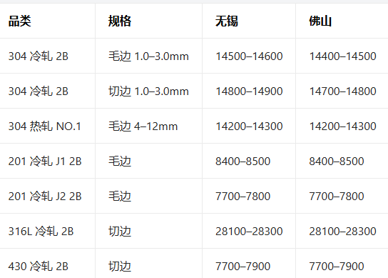 4月28日全国不锈钢现货报价参考