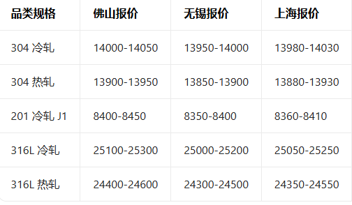 4月29日全国不锈钢现货报价参考