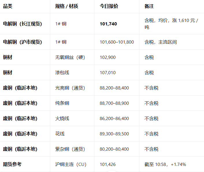 2月9日铜现货主流报价参考