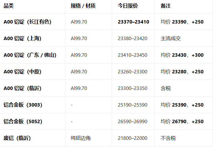 2月9日铝现货主流报价参考