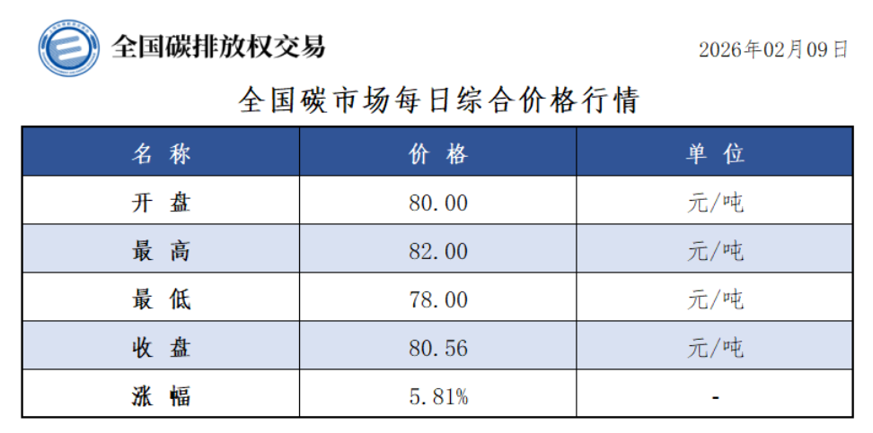 2月9日全国碳市场价涨5.81% 碳排放配额总成交531676吨【交易日报】
