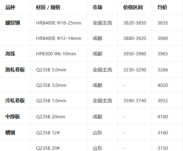 2月11日钢材现货报价参考