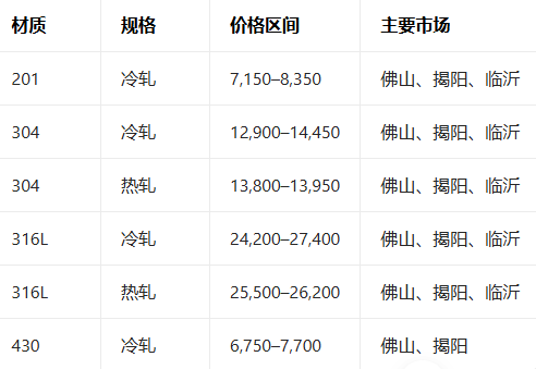 2月12日全国主流市场不锈钢现货价格参考