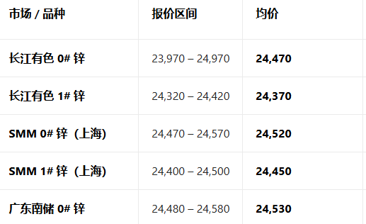 2月12日全国主流市场锌现货价格参考