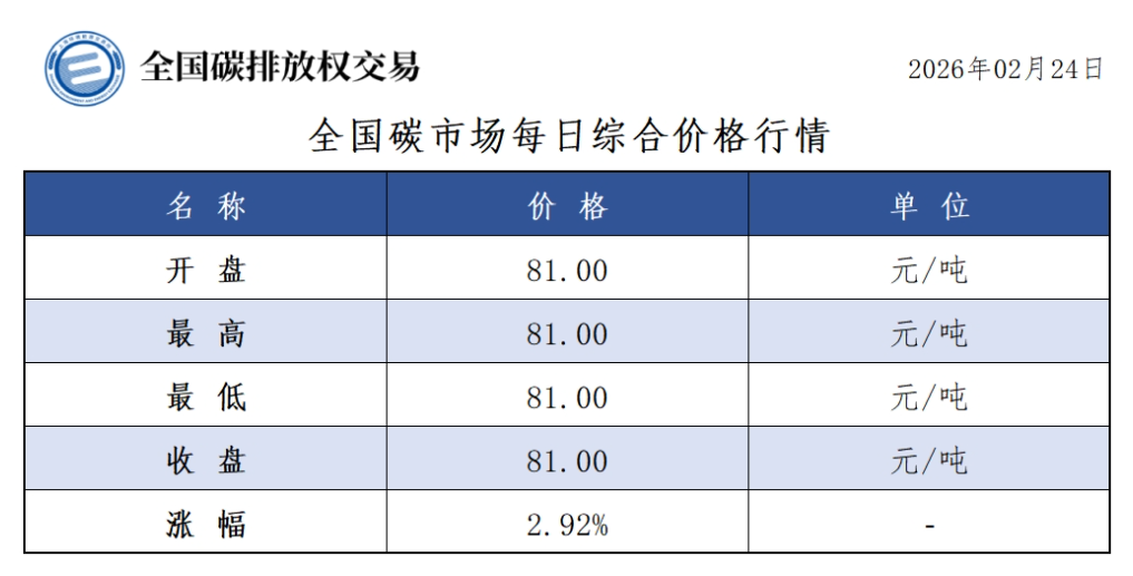2月24日全国碳市场价涨2.92% 碳排放配额总成交10000吨【交易日报】