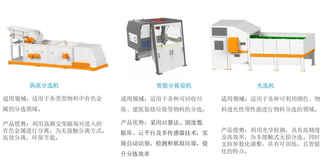 公司生产各类非金属打包、金属剪切压缩系列设备以及生活垃圾综合利用环保处理生产线等,产品广泛用于再生资源产业的国家循环经济园区、国家城市矿产师范基地、再生资源分拣企业、再生资源加工配送中心等。