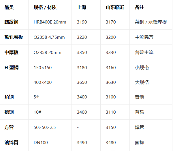 3月5日钢材现货报价参考