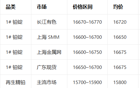 3月6日铅现货报价参考